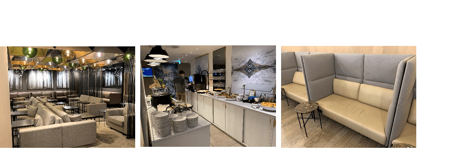 The food in the standard part was primarily snacks – a selection of cheeses, salads, and chips and salsa. In the premium part, the snacks were supplemented by a platter of smoked salmon (it’s Norway) and waffles and toppings. The drinks were all self-serve, but all the highlights- wine, champagne, beer, smoothies, and spirits and mixers- were there. The couches in the lounge were especially comfortable; I love a good couch in an airport.