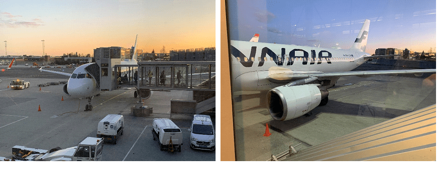 At 16:30, we walked down to the gate as boarding was about to begin. The gate area was relatively crowded with people and, as is often the case in the Nordic countries, the boarding was somewhat disordered, being controlled by both gates and a gate agent, so Krister and I just filed into the lines and follow the disorder. The jet bridges are basically giant windows, and so walking to the plane is great fun.