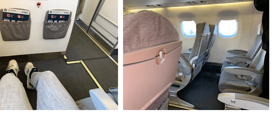 With Finnair doing back to front boarding to minimize movement, Krister and I were among the last to board. I think getting business class on this flight was worth it for the peace of mind because every other seat was blocked off (which is not the case during normal times). This meant business class was in a “1-1” configuration (since E190s have a 2-2 configuration by default). Although, having looked at the seat map, I think the plane was only around half full, so most people had a set of 2 seats to themselves. I was originally assigned to seat 3A, but like on the previous flight, business class was mostly empty, so I asked to move up to seat 1A.