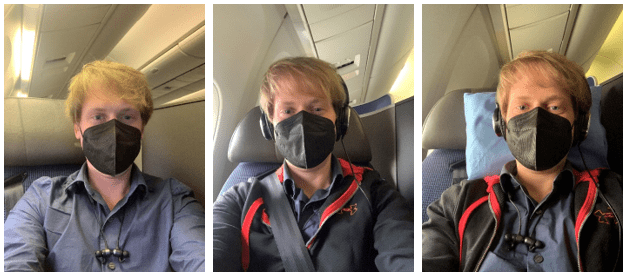 I got a few different angles of me in the seat over the course of the flight: