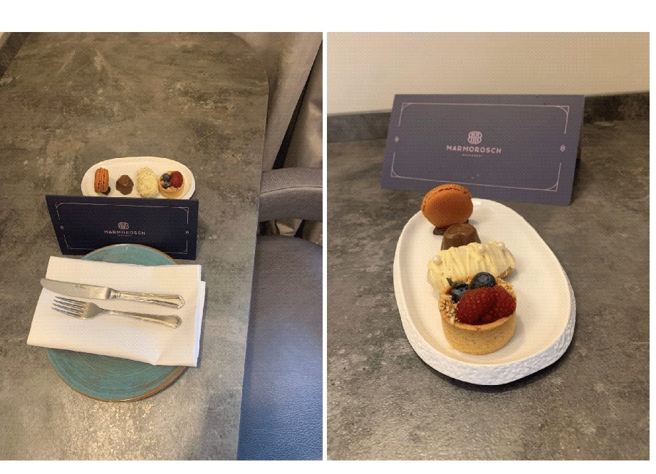 The room itself was pretty standard for a European hotel room but with a bit more empty floor space. Upon arrival, I saw that a tiny dessert plate had been laid out for me.