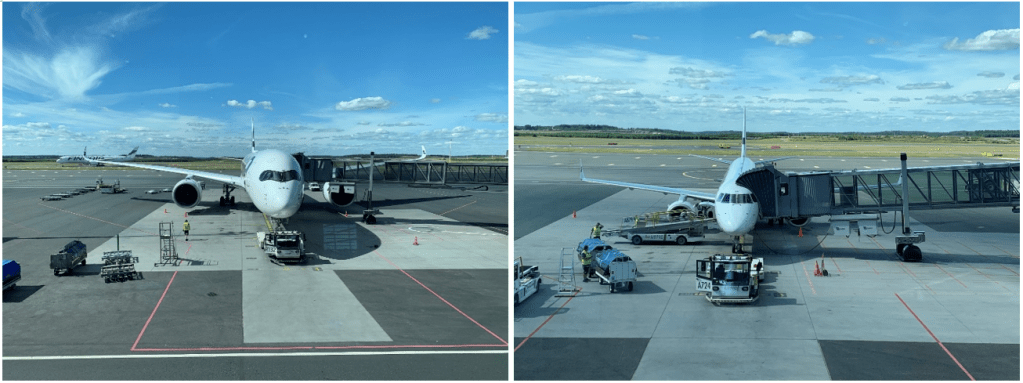 I headed over to my gate once I got the notification that the flight was boarding. Interestingly, the flight to Manchester left from the gate right beside the flight to London. Seeing the two aircraft beside each other really speaks to the difference in size of the A350 vs the E190 and the relative demand to Manchester. I still aspire to fly Finnair to Europe one day; I’ve tried twice but haven’t yet succeeded because of the pandemic.