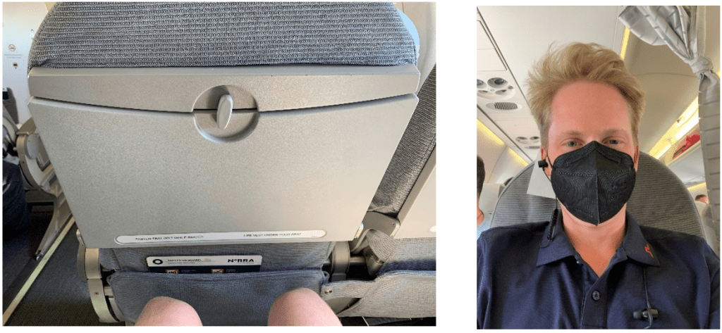 Business class on the E190s is simply the first few rows of seats, in front of the moveable curtain. On this flight, there were 6 people across 3 rows of business class. Briefly during the pandemic, seats were blocked, but now everything is back to normal, which is to say no seats were blocked. The other downside of the regional aircraft is the lack of WiFi or any other type of IFE. There was also no duty-free sales like on mainline aircraft.
