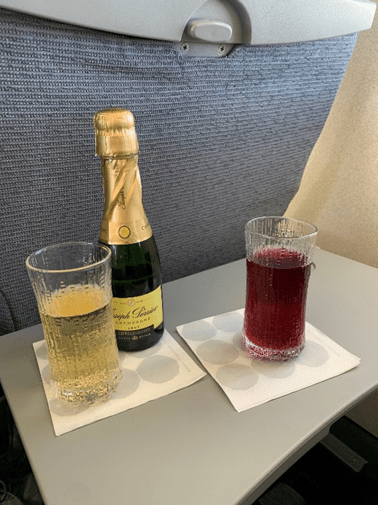 I started with some blueberry juice and champagne, like I always do on Finnair flights.