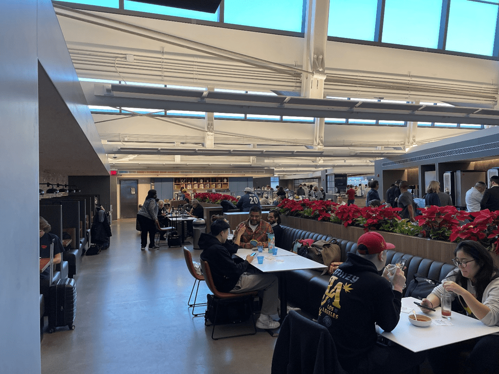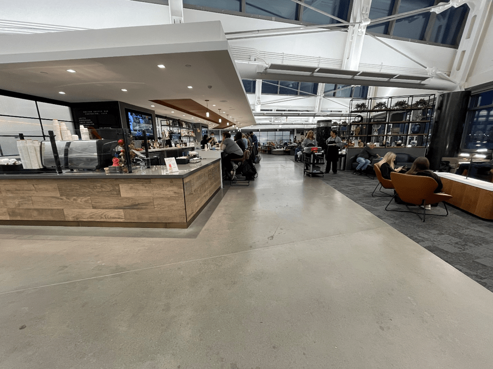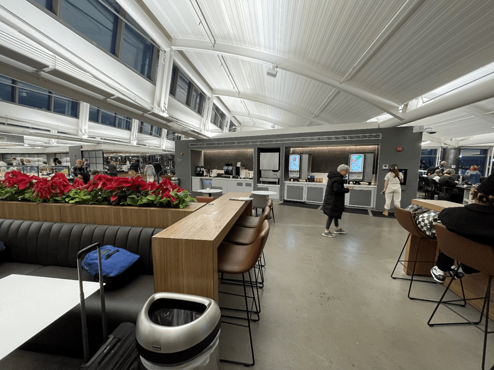 Entry into the United Club was handled by automatic gates, which was the first time I’d seen these in the US and anywhere since the Finnair lounge. The United Club is separated into various areas, including a dining area, a lounging area, a bar, and an area with large (shared) high-top tables. I struggled to find a seat/table that wasn’t already taken, so I opted to share a high-top table.