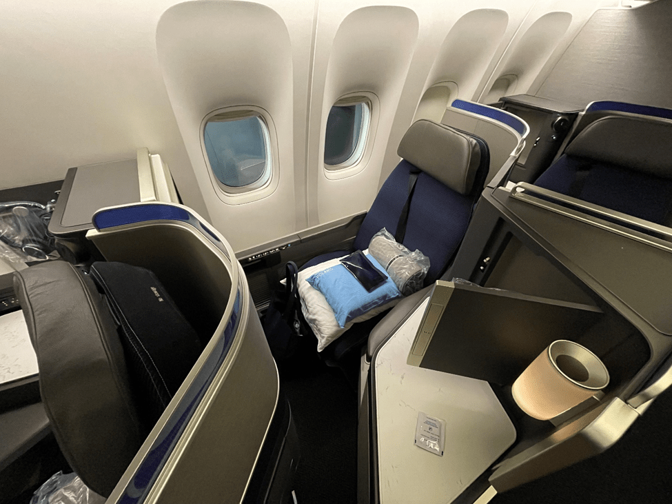 The 777 has the best Polaris seats, in my opinion, because they’re slightly wider than those on the 787 or 767. That being said, I think the 767 has the most fun layout with its unique 1-1-1 configuration. I’ve actually only ever flown Polaris internationally on 767s, and I’d never flown in Polaris (seating) on a United 777-300ER before. I have flown 777s domestically, both on premium transcontinental and on regular flights.