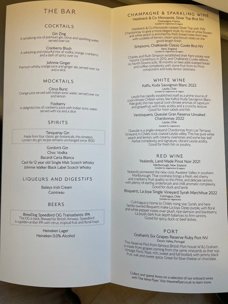 The menu’s format was updated compared to the standard Club World menu, and the menu for the flight was as follows:
