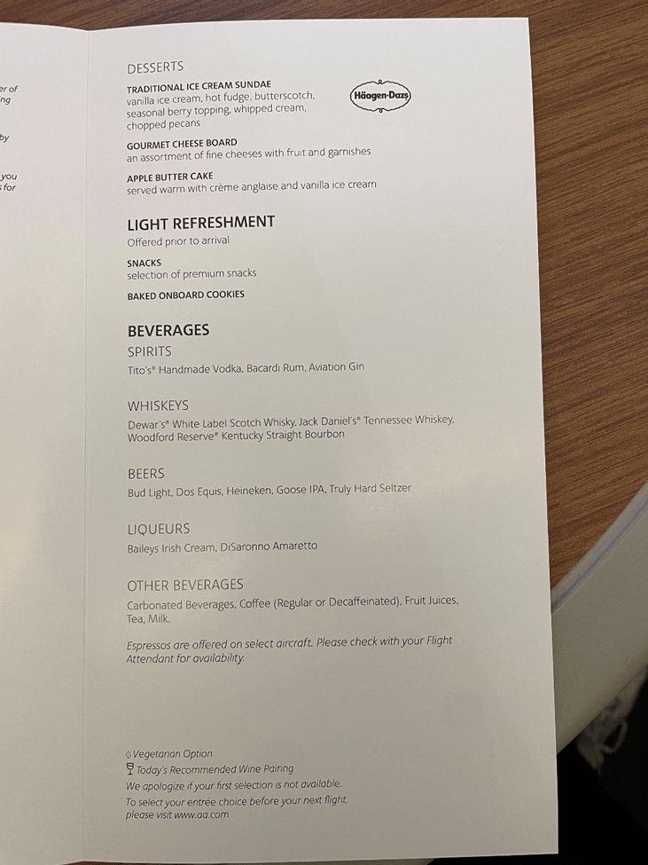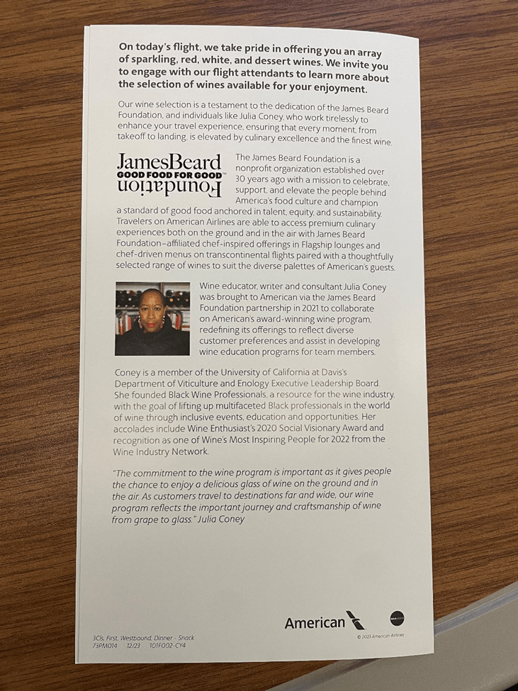 I asked the flight attendant what wines were onboard, and he (very reasonably) flipped my menu over to show me the list, and was very surprised it wasn’t there. I’m not surprised AA didn’t tell their flight attendants that they were ditching wine lists.