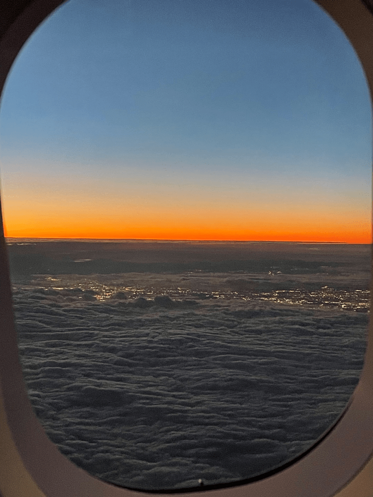 Since it was January, the sun set very early, and I got to watch it from the sky: