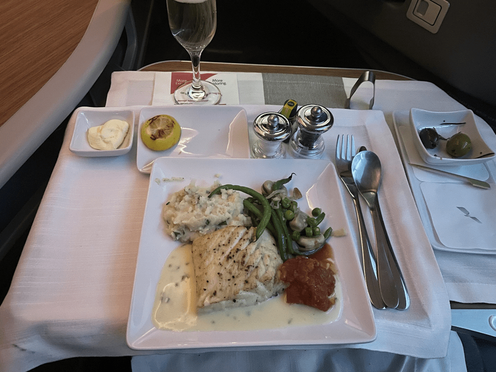 Probably my favorite thing to do on a plane is to watch a movie with dinner, so I indulged in that on this flight (as usual). Interestingly, the IFE was fine at first but later in the flight it broke. I was tired and decided to sleep, so I didn’t bother trying to deal with it getting fixed. Especially because soon after I woke up, they collected the headsets anyway.