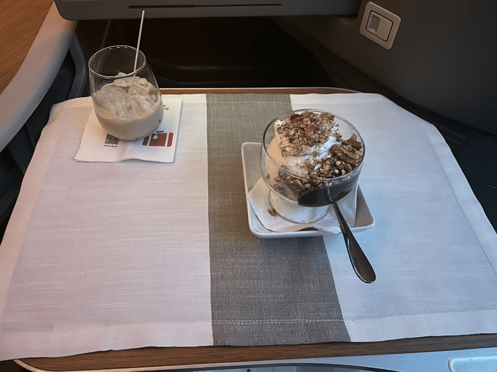 In summary, I enjoyed this flight a lot once I was actually on the plane. None of the problems I had on the ground were the result of American Airlines, and actually, every person I interacted with was very helpful. New York isn’t really a place known for having the friendliest people, but efficient and professional is a perfectly acceptable vibe for me. And my brief stop in the Chelsea lounge was actually really good, so I’ll give it a 4/5 for right now. I really liked seat 5A. I was so far back that it felt really private, and as we know, I do love this seat (5/5). The service on this flight was good but unmemorable (4/5). The food was decent but a bit bland and unremarkable, except for the sundae (4/5). The IFE was fine, given the small issue I’d had with it (3/5).
