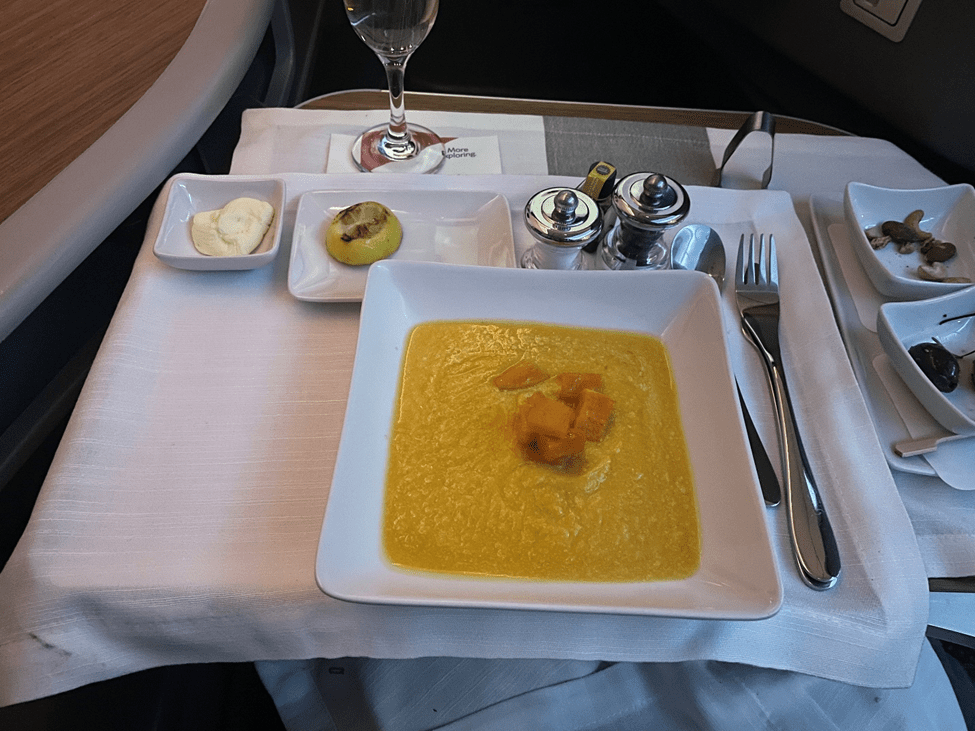 Next up came the soup, which is always my favorite course. And it’s the main differentiator of the service from Flagship Business on this route.