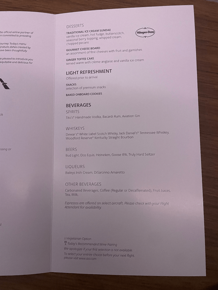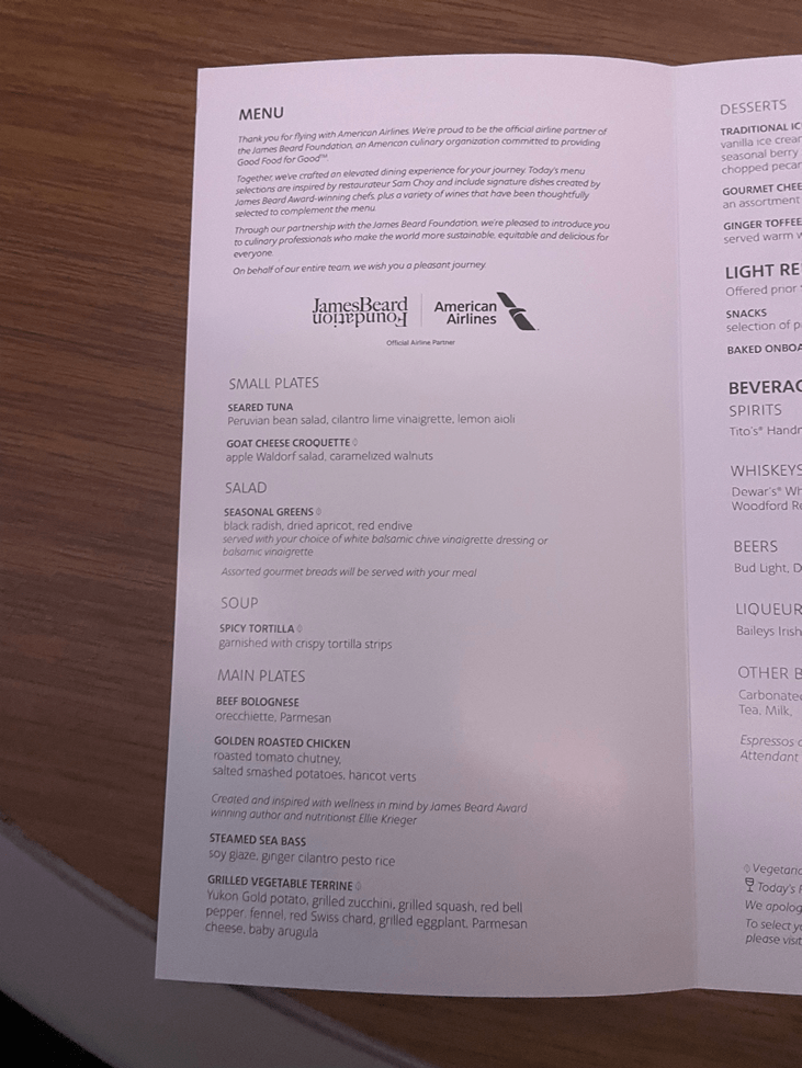 At some point, I should try to get a Flagship Business menu off one of these flights and compare them directly.