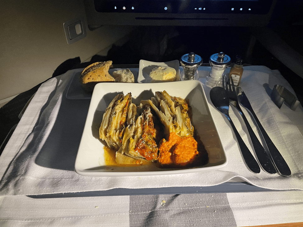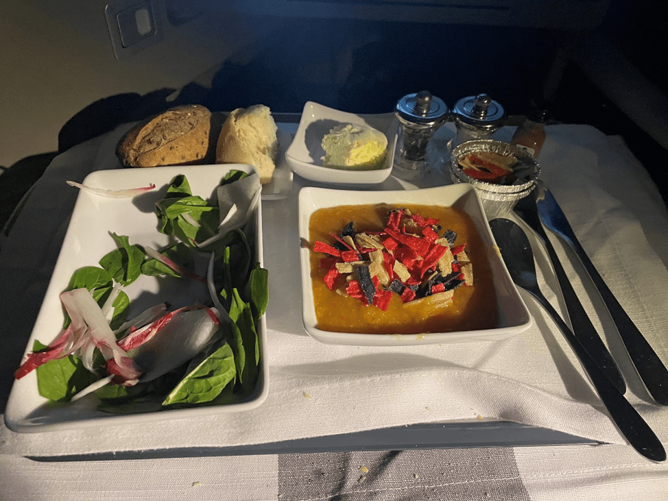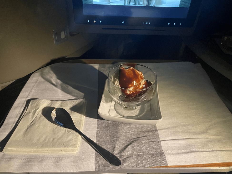 Since I had eaten in the lounge, I decided to put off my meal in favor of getting some work done. A few hours later, I still wasn’t hungry, but we were more than halfway through the flight, so I went ahead and requested the meal.