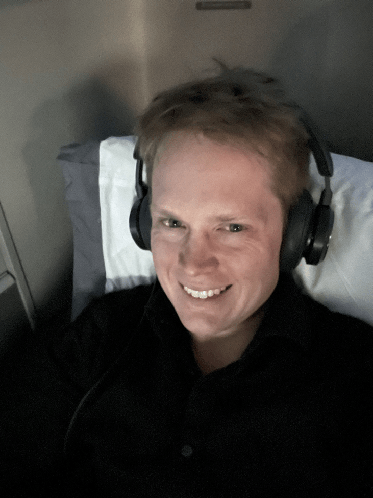 At this point, I decided to just sleep away the rest of the flight as best I could. So, I opened all that bedding from before (and kept my bonus amenity kit) and settled in. Having two pillows was excellent.