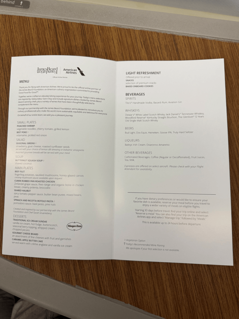 When I did finally get a menu, I saw that it was basically the same as every other time I’d flown Flagship First in 2024.