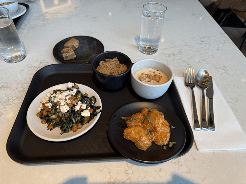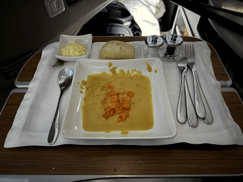 The soup was not the best presented ever, but it was not burned, and I like butternut squash soup. Every time I’ve had soup on American, a little bit of salt has been needed for the soup to actually be good, and that was the case this time as well.