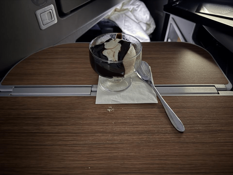 I don’t have any pictures to really demonstrate this, but this seat had seen better days. The cushion had lost a lot of its padding, and it had an awkward gap when put into lie-flat mode. I did try to fix the cushion (as I’ve seen flight attendants do), but I wasn’t really able to do anything about it. Now, 4F was the last one for me to try out because I knew it wasn’t going to be anything special. And it wasn’t. I would have preferred to be in row 5, but I needed to complete the sweep. I did eventually get headphones after takeoff (and then collected before landing). But the IFE on this flight was not great; I had trouble getting the screen to respond, the headphones’ noise-canceling weren’t working, and as always, there was no free WiFi.