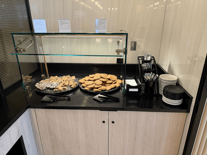 The food selection at the Admiral’s Club is way more basic, however. There are some small desserts: