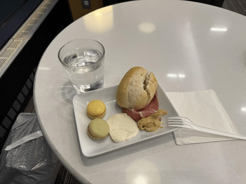 I grabbed some meat, cheese, and a roll. But also, they had macarons, which were pretty good for being in an airport lounge.