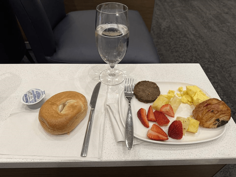 I put together an American-style breakfast for myself. I knew that I’d be getting a meal of “breakfast pizza” on my flight, but I really didn’t have enough knowledge of the domestic DeltaOne offering to know what I’d be getting.