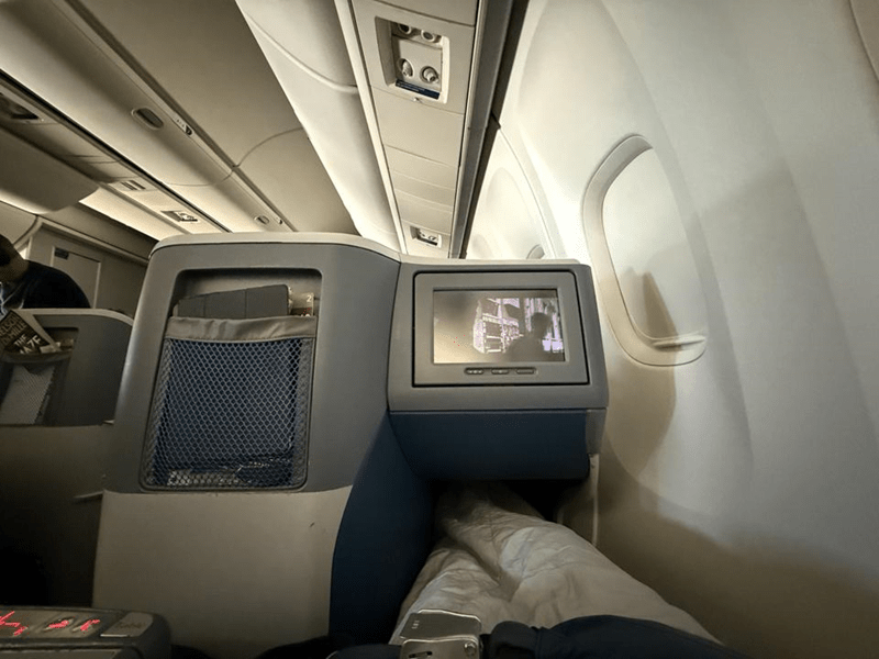 After finishing breakfast, I put the seat in lie-flat mode to take a nap. I did sleep for about 60-90 minutes, but I found it very hard to get comfortable and my knees kept hitting the sides. I will note, however, that I did not have this problem when sitting in seat 1A, possibly due to the additional footwell space.