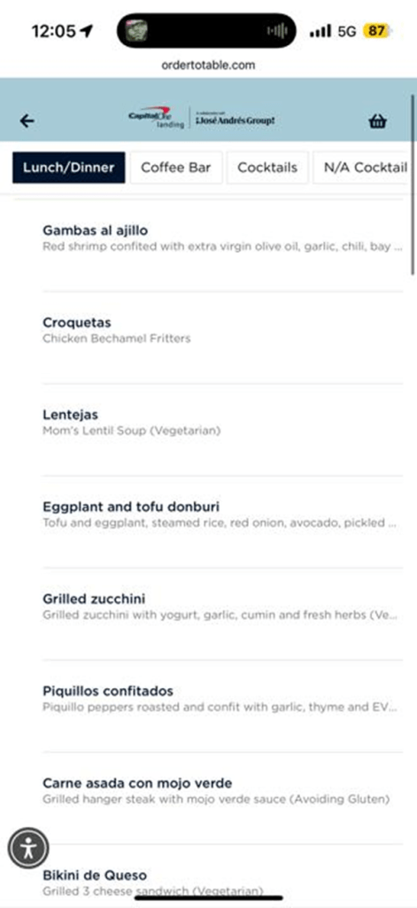 The offerings on the menu are just one continuous list. It’s much longer than the equivalent list at the Chase Sapphire Lounge, but Chase’s lounge has a more extensive buffet. I tried to get a screenshot of the entire menu, but it didn’t turn out well when trying to upload it to the blog.