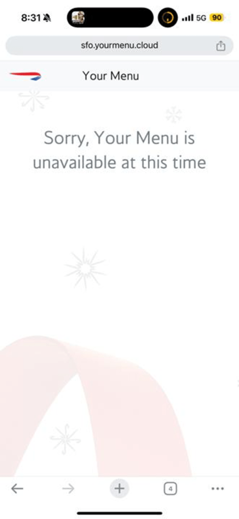 When I first got to the lounge, I was checking out the online menu, which usually has some additional small plates of hot food. However, I took slightly too long, and the menu stopped being available at 8:30 pm: