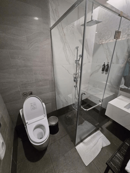 But there were two shower suites! He notes that it seemed like the hot water pressure dropped when the other was in use.