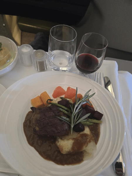 Author’s note: this flight was structured so different to other flights I’ve taken: with the light brunch-like meal with a beef main, nap, snack service, full sleep, “satay service”, then main meal (which also had a beef main), and then bonus satay that it took me several back-and-forths with Michael to figure out how everything was ordered, and I’m still not entirely sure I’ve gotten it right.