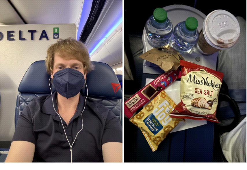 Now, I think that this longer flight from SLC to BWI offers a meal service during the day, but understandably for a flight that is scheduled to depart at 11:59 pm, they did a minimal inflight service to reduce disruptions. I also put in the old-style headphones again just for consistency. A quick pre-departure beverage service was offered, along with pre-orders if we wanted anything in the air.