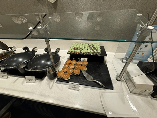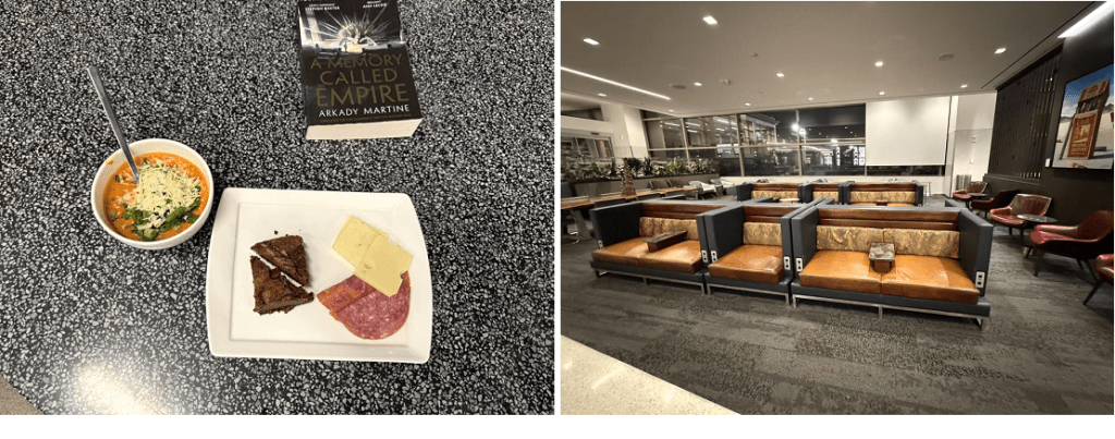 So I’ll have to do a more substantive review in a future post. That’s also part of the reason for combining these two flights into one post. But suffice it to say that at this time in the evening, there was virtually no one in the lounge, and only some remnants of food were on offer.